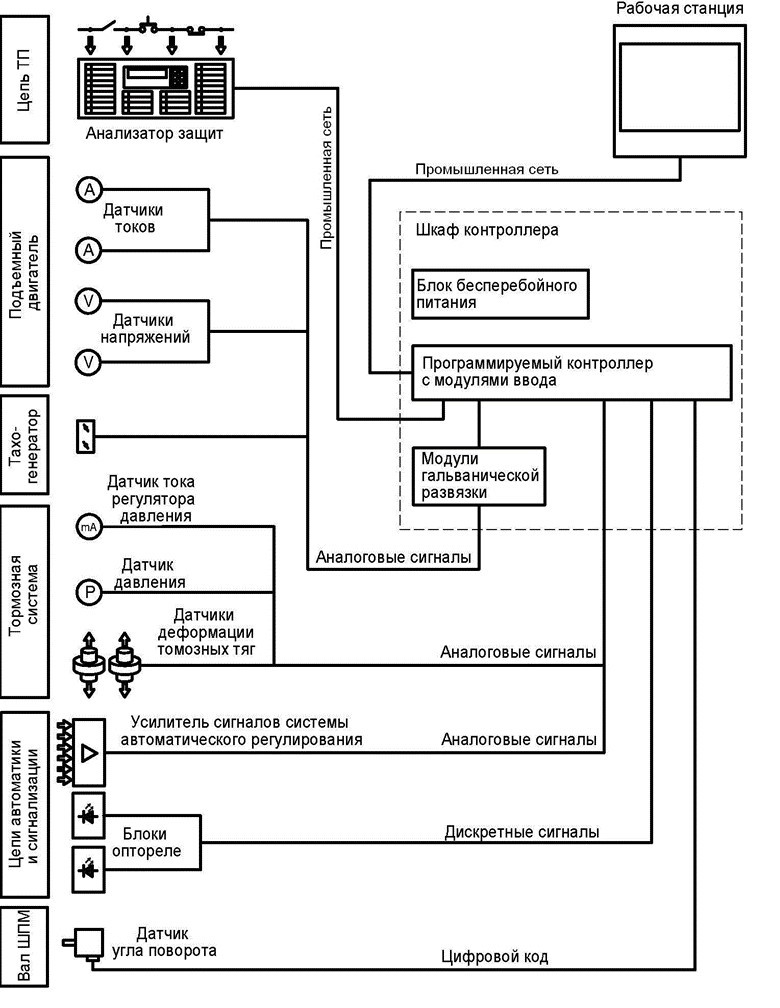 - учет массы поднимаемого в скипах груза (для скиповых ШПУ);